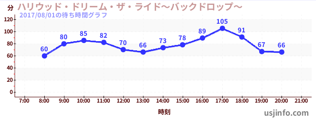 • ハリウッド・ドリーム・ザ・ライド〜バックドロップ〜$B$N(B2017年08月01日の待ち時間