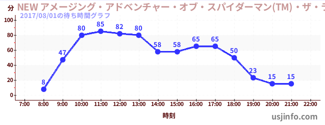 • NEW アメージング・アドベンチャー・オブ・スパイダーマン(TM)・ザ・ライド 4K3D$B$N(B2017年08月01日の待ち時間