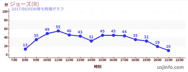 • ジョーズ(R)$B$N(B2017年08月01日の待ち時間