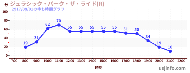 • ジュラシック・パーク・ザ・ライド(R)$B$N(B2017年08月01日の待ち時間