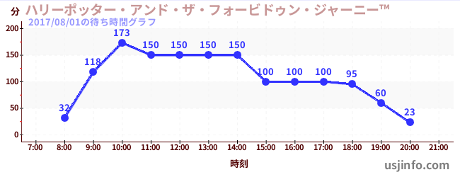 • ハリーポッター・アンド・ザ・フォービドゥン・ジャーニー™$B$N(B2017年08月01日の待ち時間