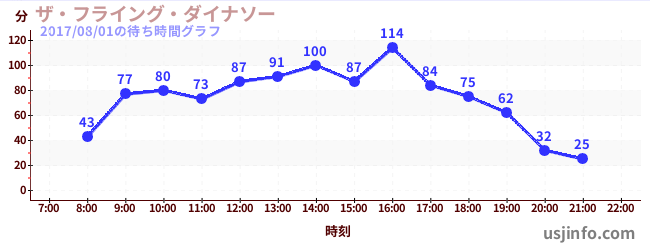 • ザ・フライング・ダイナソー$B$N(B2017年08月01日の待ち時間