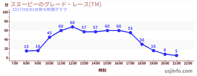 • スヌーピーのグレード・レース(TM)$B$N(B2017年08月01日の待ち時間