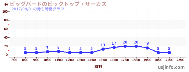 • ビッグバードのビックトップ・サーカス$B$N(B2017年08月01日の待ち時間