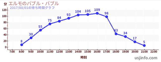 • エルモのバブル・バブル$B$N(B2017年08月01日の待ち時間