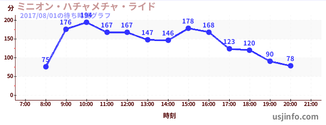 • ミニオン・ハチャメチャ・ライド$B$N(B2017年08月01日の待ち時間