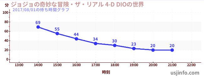 • ジョジョの奇妙な冒険・ザ・リアル 4-D DIOの世界$B$N(B2017年08月01日の待ち時間