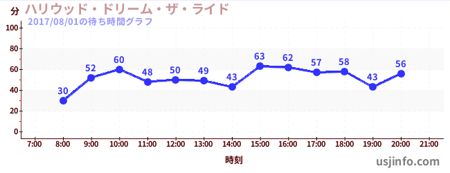 • ハリウッド・ドリーム・ザ・ライド$B$N(B2017年08月01日の待ち時間