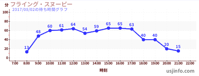 • フライング・スヌーピー$B$N(B2017年08月02日の待ち時間