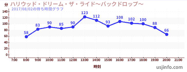 • ハリウッド・ドリーム・ザ・ライド〜バックドロップ〜$B$N(B2017年08月02日の待ち時間