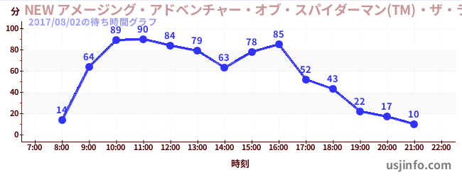 • NEW アメージング・アドベンチャー・オブ・スパイダーマン(TM)・ザ・ライド 4K3D$B$N(B2017年08月02日の待ち時間