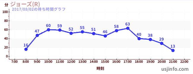 • ジョーズ(R)$B$N(B2017年08月02日の待ち時間