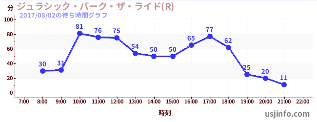 • ジュラシック・パーク・ザ・ライド(R)$B$N(B2017年08月02日の待ち時間
