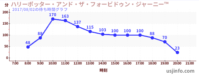 • ハリーポッター・アンド・ザ・フォービドゥン・ジャーニー™$B$N(B2017年08月02日の待ち時間