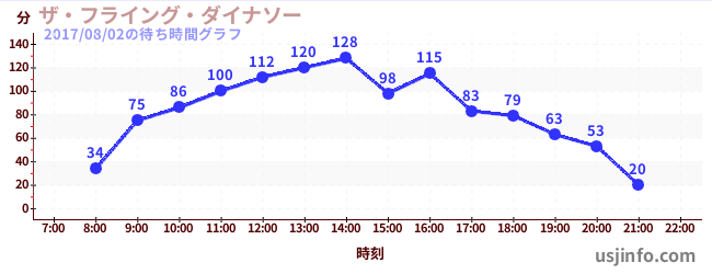• ザ・フライング・ダイナソー$B$N(B2017年08月02日の待ち時間