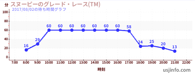 • スヌーピーのグレード・レース(TM)$B$N(B2017年08月02日の待ち時間