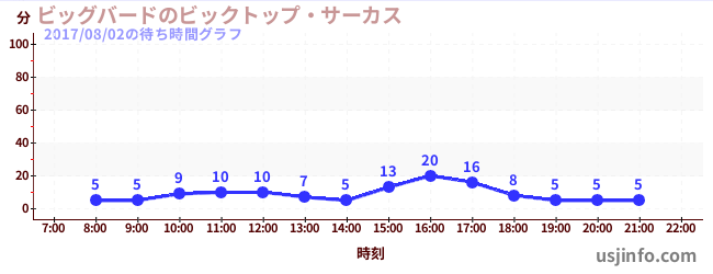 • ビッグバードのビックトップ・サーカス$B$N(B2017年08月02日の待ち時間