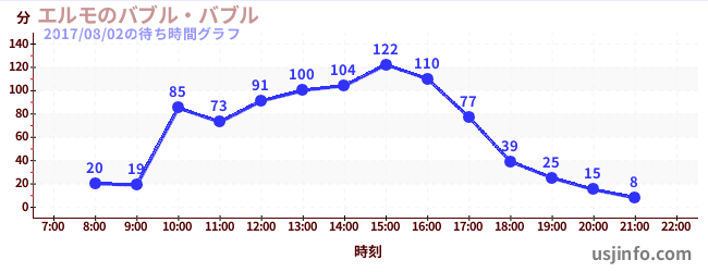 • エルモのバブル・バブル$B$N(B2017年08月02日の待ち時間