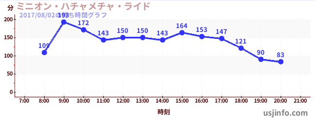 • ミニオン・ハチャメチャ・ライド$B$N(B2017年08月02日の待ち時間