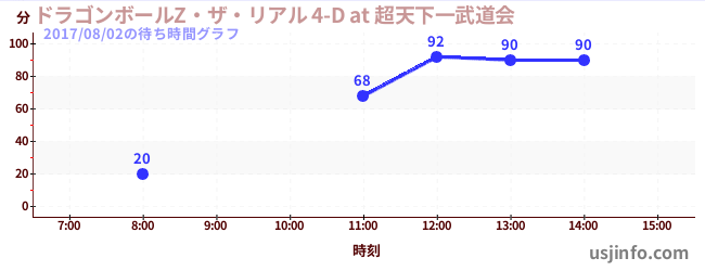 • ドラゴンボールZ・ザ・リアル 4-D at 超天下一武道会$B$N(B2017年08月02日の待ち時間