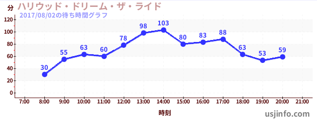 • ハリウッド・ドリーム・ザ・ライド$B$N(B2017年08月02日の待ち時間