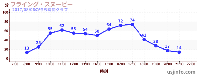 • フライング・スヌーピー$B$N(B2017年08月06日の待ち時間