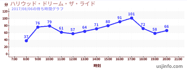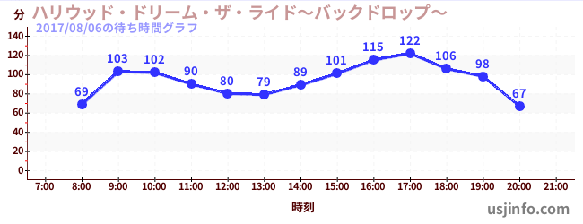 • ハリウッド・ドリーム・ザ・ライド〜バックドロップ〜$B$N(B2017年08月06日の待ち時間