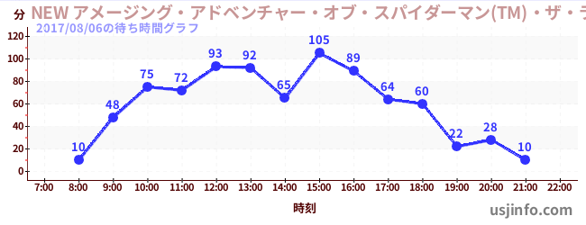 • NEW アメージング・アドベンチャー・オブ・スパイダーマン(TM)・ザ・ライド 4K3D$B$N(B2017年08月06日の待ち時間