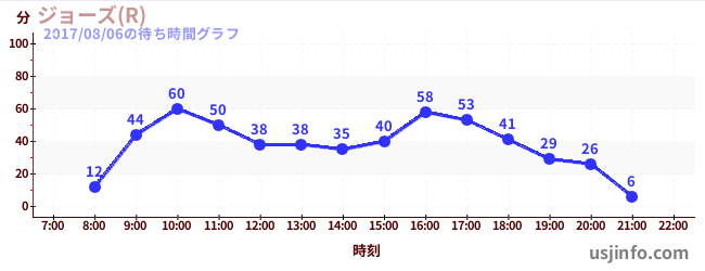 • ジョーズ(R)$B$N(B2017年08月06日の待ち時間