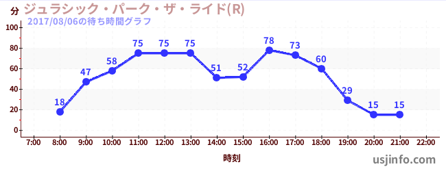 • ジュラシック・パーク・ザ・ライド(R)$B$N(B2017年08月06日の待ち時間