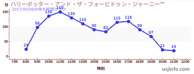 • ハリーポッター・アンド・ザ・フォービドゥン・ジャーニー™$B$N(B2017年08月06日の待ち時間