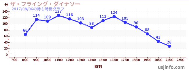 • ザ・フライング・ダイナソー$B$N(B2017年08月06日の待ち時間