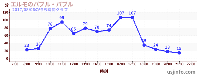• エルモのバブル・バブル$B$N(B2017年08月06日の待ち時間