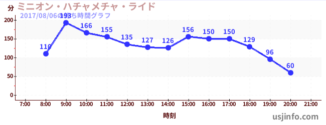 • ミニオン・ハチャメチャ・ライド$B$N(B2017年08月06日の待ち時間