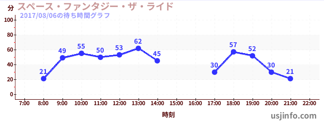 • スペース・ファンタジー・ザ・ライド$B$N(B2017年08月06日の待ち時間