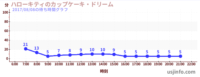 • ハローキティのカップケーキ・ドリーム$B$N(B2017年08月08日の待ち時間
