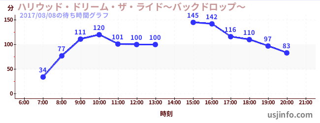 • ハリウッド・ドリーム・ザ・ライド〜バックドロップ〜$B$N(B2017年08月08日の待ち時間