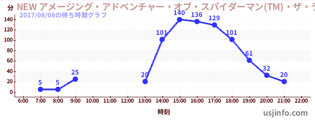 • NEW アメージング・アドベンチャー・オブ・スパイダーマン(TM)・ザ・ライド 4K3D$B$N(B2017年08月08日の待ち時間