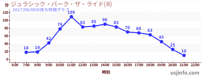 • ジュラシック・パーク・ザ・ライド(R)$B$N(B2017年08月08日の待ち時間