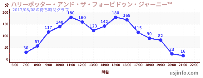• ハリーポッター・アンド・ザ・フォービドゥン・ジャーニー™$B$N(B2017年08月08日の待ち時間