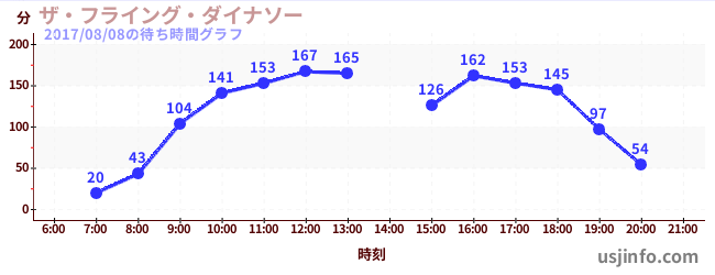 • ザ・フライング・ダイナソー$B$N(B2017年08月08日の待ち時間