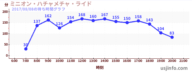 • ミニオン・ハチャメチャ・ライド$B$N(B2017年08月08日の待ち時間