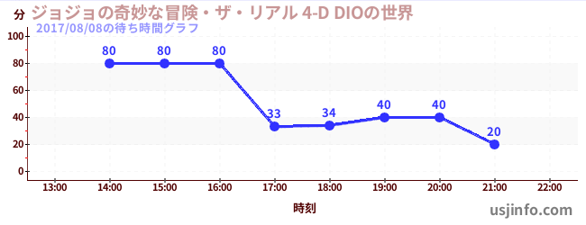 • ジョジョの奇妙な冒険・ザ・リアル 4-D DIOの世界$B$N(B2017年08月08日の待ち時間