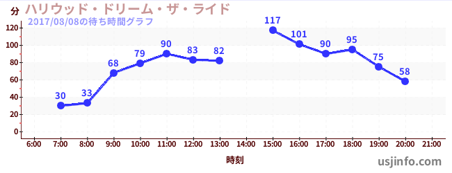 • ハリウッド・ドリーム・ザ・ライド$B$N(B2017年08月08日の待ち時間