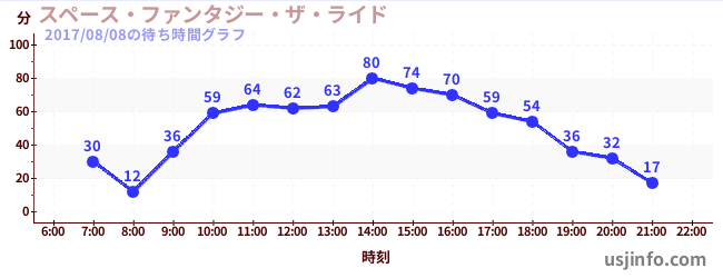 • スペース・ファンタジー・ザ・ライド$B$N(B2017年08月08日の待ち時間