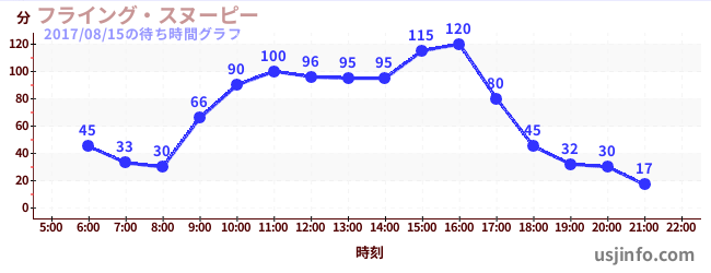 • フライング・スヌーピー$B$N(B2017年08月15日の待ち時間