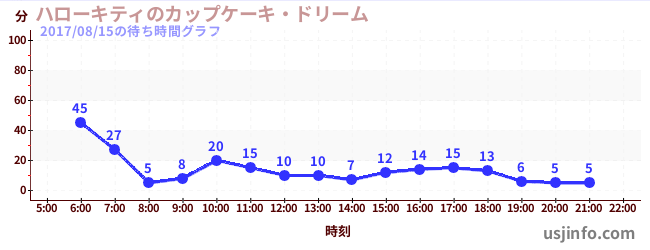 • ハローキティのカップケーキ・ドリーム$B$N(B2017年08月15日の待ち時間
