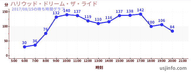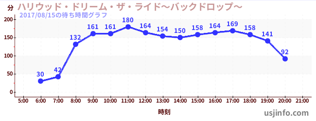 • ハリウッド・ドリーム・ザ・ライド〜バックドロップ〜$B$N(B2017年08月15日の待ち時間