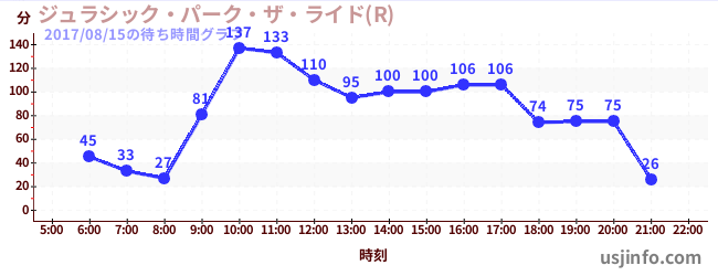 • ジュラシック・パーク・ザ・ライド(R)$B$N(B2017年08月15日の待ち時間