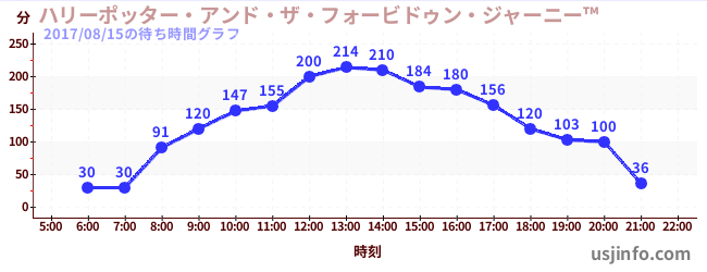 • ハリーポッター・アンド・ザ・フォービドゥン・ジャーニー™$B$N(B2017年08月15日の待ち時間